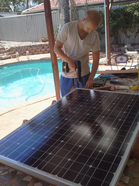Joe hard at work building the solar panel frame to go on top of the car. Looking good!