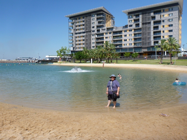 Mum standing in the Darwin Waterfront Precinct Lagoon.
