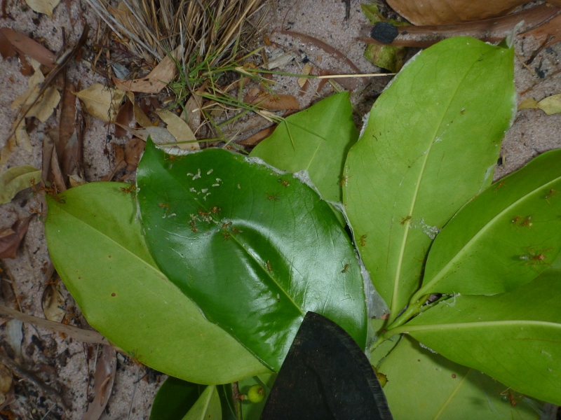 We ate some green ants and ant larvae on our walk to the rock pool and found an ants nest under construction. These ants are amazing. In the photo you see some ants holding a leaf. They remain in position whilst ants on the inside glue the leaves together with a silk like substances that they produce. Impressive team work skills. The ants taste like strong lemon juice, the larvae didn’t have much flavour and a texture like puss.