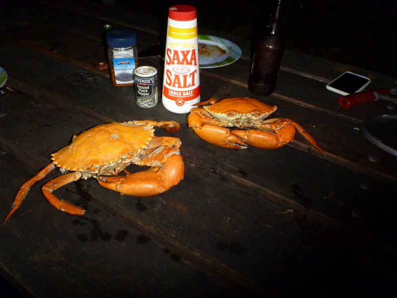 At night we cooked up two of our three mud crabs and sat around a big fire with a cool drink or two. Someone had left a huge log in the fireplace which was handy as we had no time to collect wood.