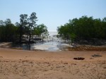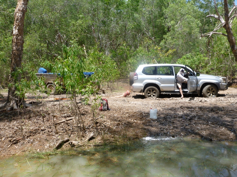 The chap at the Point Stuart Wilderness Lodge reception told us we should try West Alligator Head, slightly further down the Arnhem Highway from Point Stuart. So that’s where we headed. It’s 81km of dirt track to get there, passing a few other camping spots and billabongs on the way. It starts off pretty good, but the second half becomes sandier and badly corrugated. On the way we met up with Luke and co, a group of fellas who had gotten bogged and were walking towards the highway to flag for help. They hopped in and we headed towards their vehicle – a Prado bogged in a small but boggy mud hole. They had spent the best part of the day before trying to free the vehicle, before staying over night then resorting to the long walk to get help. A quick tug from the hilux with a snatch strap had them out easy. Luke was generous enough to give us a carton of beer for our troubles. Very generous, thanks Luke, it wasn’t necessary but greatly appreciated.