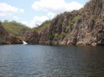 Edith Falls are brilliant. Flowing strong even at the end of the dry season and emptying into a cool, deep pool that’s perfect for swimming. The camp grounds are one of the best, with good access on a bitumen road off Stuart Hwy, green grassed areas, kiosk, laundry, gas bbqs, hot showers, flushing toilets, drinking water, lighting, picnic tables, and situated right near the lower pool of Edith Falls. Bit pricey for national park standards at $9 per person per night, but you get good facilities for the money, better than some caravan parks. Only let down is that there are no fires allowed.