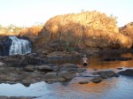 Watch out of you have any sores when you go swimming. The little fish in the lower pool at Edith Falls have a habit of pecking at any sores or wounds. Cheeky little buggers they are. I’d suggest, in a survival situation, baiting your fishing hooks with scabs picked off any wounds you have. You’ll get yourself a feed of fish.