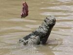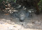 Got plenty of good photos of jumping crocodiles and crocodiles wallowing on the muddy banks of the Adelaide River. The tour guide said the crocs cover themselves in mud to escape the flies. You’ll see in some photos the flies that constantly attack the crocodiles. To me they look like march flies or sand flies – biting flies that suck blood. One way to help spot crocodiles on the muddy banks is to look for swarming flies.