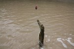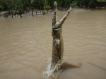 Sharni’s friend Lydia came to visit us for a weekend of fun in Darwin. Jumping crocodiles were high on the agenda. The jumping crocodile tours operate about an hour out of Darwin, down Arnhem Highway on the way to Kakadu National Park on the Adelaide River. Good fun it was. We were lucky enough to see Brutus the famous three legged crocodile. He’s huge – around 5m long. The photos don’t do justice to his immense size since it’s difficult to gauge scale in the shots I took. It was scary having his huge head along side the boat. His head is about 70cm long. Get caught in those and you don’t have much chance.