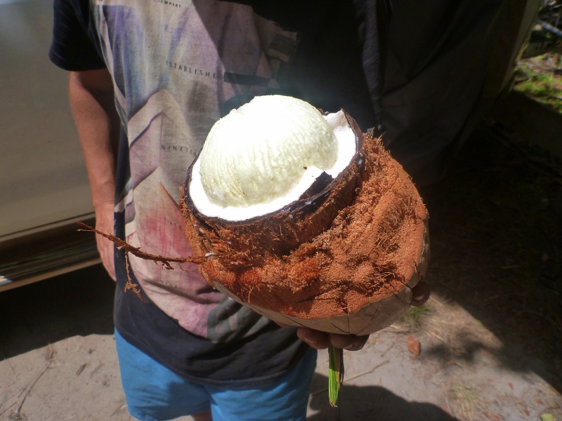 We didn’t set off on a coconut pilgrimage initially but this area of coast has a butt load of coconut trees all over the joint that it turned into one. Being interested in the skills to live off the land, chopping shit with a knife and also being a massive tight ass meant I took advantage of the coconut situation. The sprouted coconut centre tasted like coconut but less flavorsome. It was bland but a fibrous, spoungy texture. Maybe it was too mature.