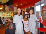 Downtown Las Vegas is also home to the famous Heart Attack Grill, this was on our USA must do list. Heart Attack Grill is a restaurant that serves really high calorie meals. The servers are dressed as nurses and doctors, customers are dressed in hospital gowns and if you don’t finish your meal you are bent over and spanked with a wooden paddle by a nurse. You can weigh in and if you weigh over 160kg you get your meal for free. Joe had a double bypass burger and Sharni had a coronary dog. You don’t eat at the Heart Attack Grill for quality food you eat there for the novelty as the food tastes like grease and salt. We barely ate ours. Joe received a good spanking by the nurse. The décor of the place is funny and so are the menu listings. Even though the food was enough to bring on a heart attack just looking at it we had fun.