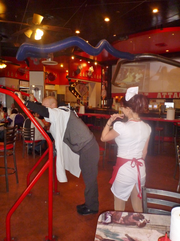 ‘Joe getting spanked by a nurse for not finishing his food, Heart Attack Grill, Freemont Street Las Vegas’