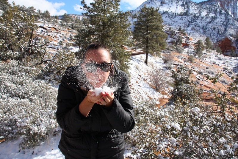 ‘Fresh powdery snow, Zion National Park, Utah’