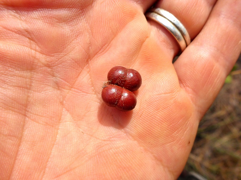 On the walk into Adcock Gorge there’s heaps of dogs nut. Also called dysentery bush, technical name grewia retusifolia. Fortunately the common name is due to the appearance and not the taste. It tastes a bit like cooked apple.