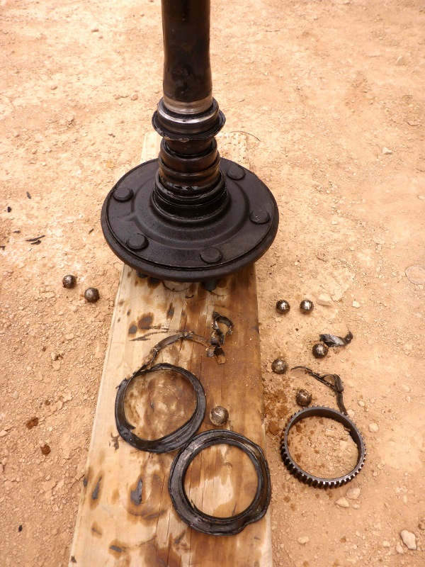 Whilst we waited for the part I decided to take the axle out myself to save Wayne’s time. I pulled out the axle, turned it vertical and rested the end of the axle onto the ground. Upon impact with the ground all the balls fell out of the bearing and the hub separated from the axle. Wow that was close! If we drove much more we would have had the wheel fall off and a whole lot more damage.