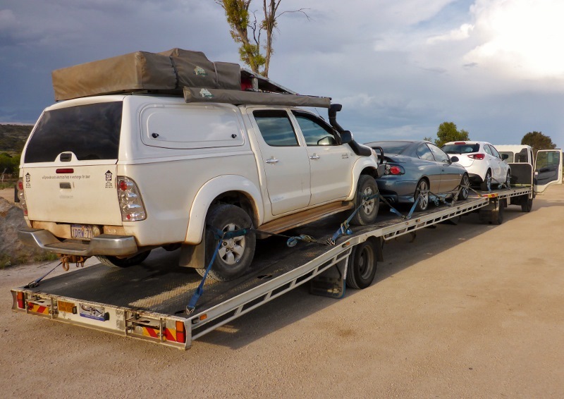 We were only 10km out of Mundrabilla but even that was a stretch with the condition of the bearing. We had phone reception so Sharni and I played around on our phones looking for Ceduna towing services. Wow they should have told me to get the defibrillator out before providing the quote: $3900. We could get a cheaper tow to Eucla but there’s no mechanic there. We decided to very slowly drive to Mundrabilla and make a plan from there. Upon arriving we promptly ordered ice-cream and beer at the bar and asked the staff for advice. A few phone calls and a few conversations with truckies later, we decided to try our luck finding a tow with passing trucks. And we got lucky. It wasn’t long before we were on the back of a truck heading east. We could only be taken as far as Nundroo, a tiny settlement 150km before Ceduna. There’s a resident mechanic in Nundroo and we had chatted to him on the phone, confirming he could help us.