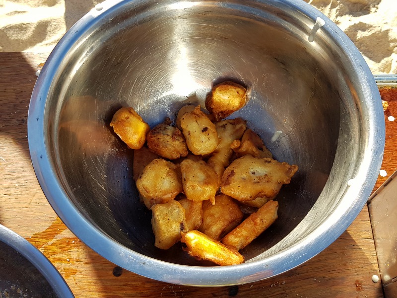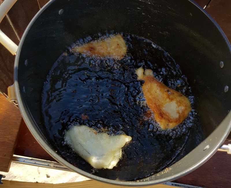 For cooking I tried something different this camp – battered deep fried salmon.