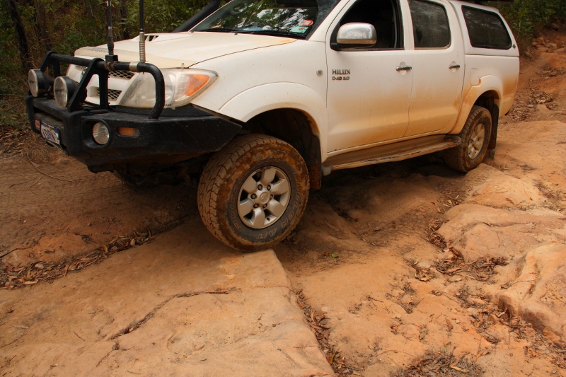 If you have a diff locker, a small lift, some experience on steep tracks and it’s the middle of the dry season then give it a go I reckon. It’s a fun track through some awesome remote country and beautiful water crossings. With your diff locker you can slowly and gently clamber up and down the steepest sections. With a small lift you can avoid bottoming out.