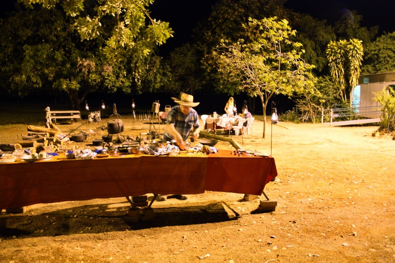 Held Tuesday, Thursday and Sunday nights at the Katherine Museum from March to December. Eat out under the starts around the campfire. Marksie cooks up some traditional outback aussie tucker including camp oven veggies and roast meat, damper, barramundi, local beef, camel, bush tea and camp oven scones whilst sharing some stories and jokes. He uses some traditional Aboriginal herbs and spices to flavour some items. Don’t eat lunch, the food is delicious and in huge proportions. BYO alcohol.