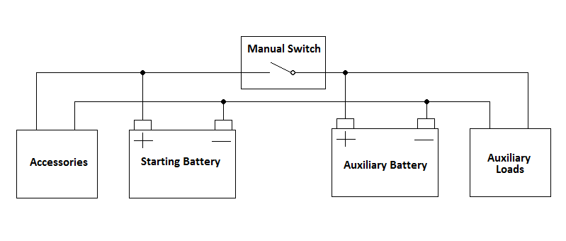 With either the manual switch or accessory driven relay, your auxiliary battery will contribute to starting your engine, which is useful if your starter battery is tired.