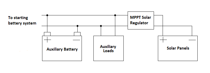 - Does not allow a charging system on your auxiliary battery to charge your starter battery: You can’t backfeed from the auxiliary side to the starter side. Some DC-DC chargers, with dedicated solar inputs, will allow solar panels to charge both the starter battery and auxiliary battery.