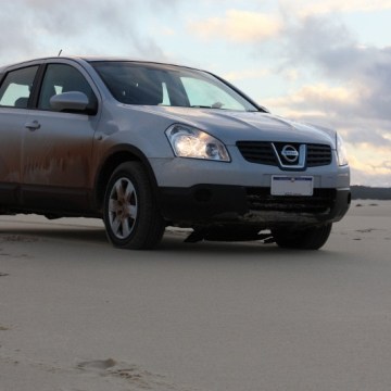 Damaged guarding on a soft roader. Poor ground clearance and approach angle means there’s a good chance it will clip the ground, especially on dune approaches.