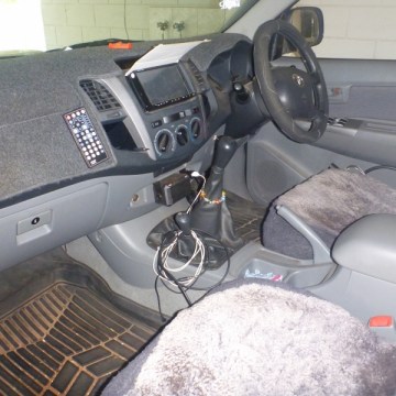 The simple yet function interior of the Hilux. Note the old school 4WD selection gearstick – the most fun way to engage 4WD. Only tough vehicles have two gearsticks.