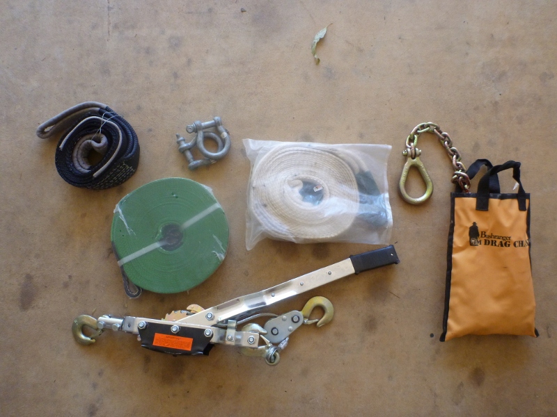 Review: The comealong worked fine recovering my hilux up hill in soft sand. The pins didn’t bend. The handle didn’t bend. The problem was the very short pull capacity, requiring regular disconnection and resetting of the winch cable and winch strap. This made the going slow. The snatch strap I used once to pull out a chap at West Alligator Head in Kakadu. Snatch straps are a last resort and I avoid using them when I can. The drag chain I have not used at all and maybe was not necessary. It’s heavy.