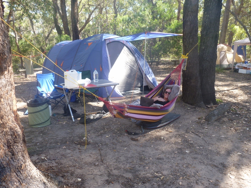 This tent is much heavier than say a cheap 4 man dome tent. It weighs over 20kg and is pretty bulky when it’s packed. On one hand I think I’ve over-done it. Too much of a step up from a much less bulky 4 man tent. Too big for two people, especially since it’s not even our main accommodation On the other hand it has been pretty good when staying somewhere for a while. One room is the bedroom with a blow up mattress, the other is a living room with a blow up couch and somewhere to keep our bags etc. With so much room it’s quite comfortable to live out of. For example when the wife has done relief teaching at some schools on our way around Australia it’s given her somewhere to put all her stuff and get ready in the morning and in bad weather it’s given me somewhere to set up a table and laptop and keep myself occupied while she’s working. Also we’ve been able to accommodate friends visiting us thanks to this tent. So I’m not convinced yet whether such a big tent has been a good or bad decision. Either way it’s a good family tent that we’ll definitely use when we have our own family.