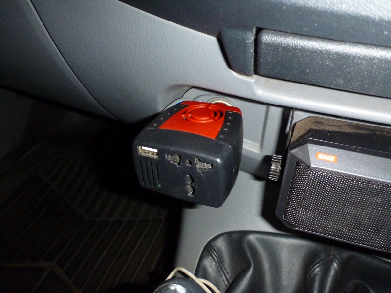 Reason for choosing: Super cheap on ebay, pretty low risky electronic gismo. Much lower standby current draw compared to larger inverters so won’t deplete the vehicle’s batteries. Compact and convenient to use for low power applications like charging laptops, shavers and cameras.