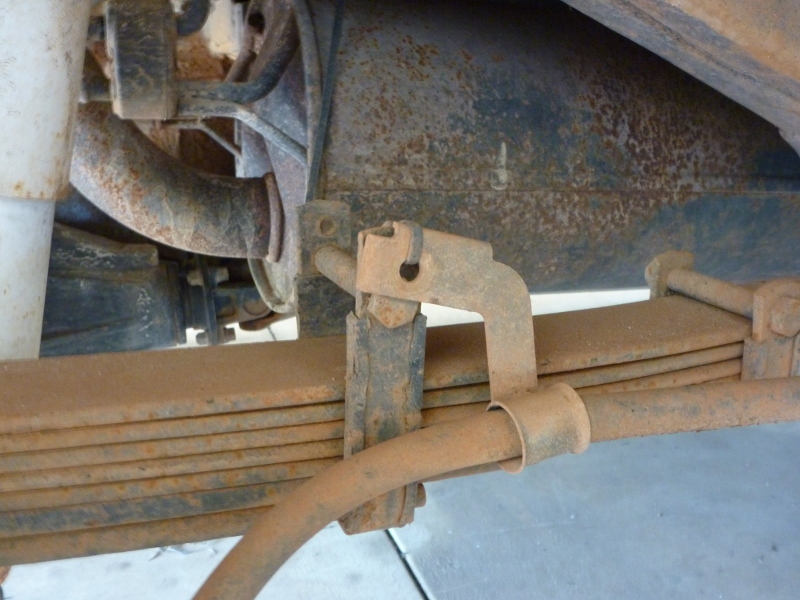 Review: The constant load rear springs are really heavy duty. Without load they lift much more than specified and require the brake cable to be extended. They are so stiff that without any load I’m not sure whether they flex at all, which yields a very bouncy ride. This is common to any springs that are underloaded. I imagine the Ironman standard load springs would handle much better without load. With several hundred kilos of load they are much better. Fully loaded with close to a tonne on the back, they level off nicely to about 40mm lift and keep the rear end feeling tight and handling well. One problem was the handbrake cable bracket could not be bolted onto the new springs, as the bolt holding the spring clamp was in the way (refer to picture). I used a cable tie to hold it.