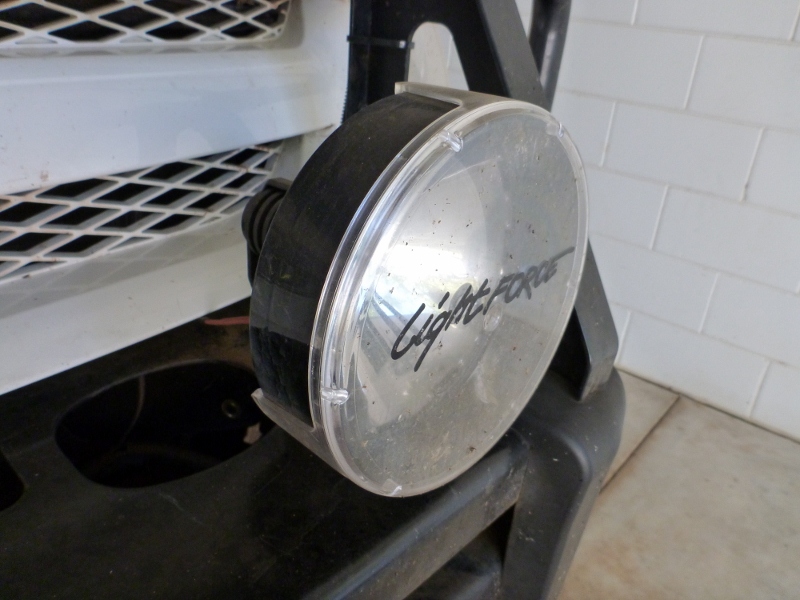 Review: Very bright considering its low current draw. Can leave it on all night without dramas. The housing seams robust but the bracket broke after a few months. Didn’t like corrugations. Provides a good wide and bright flood. The cable runs across the steel roof platform then down between the cab and the canopy and through a grommet in the tray into the rear canopy area and finally to the switch box.