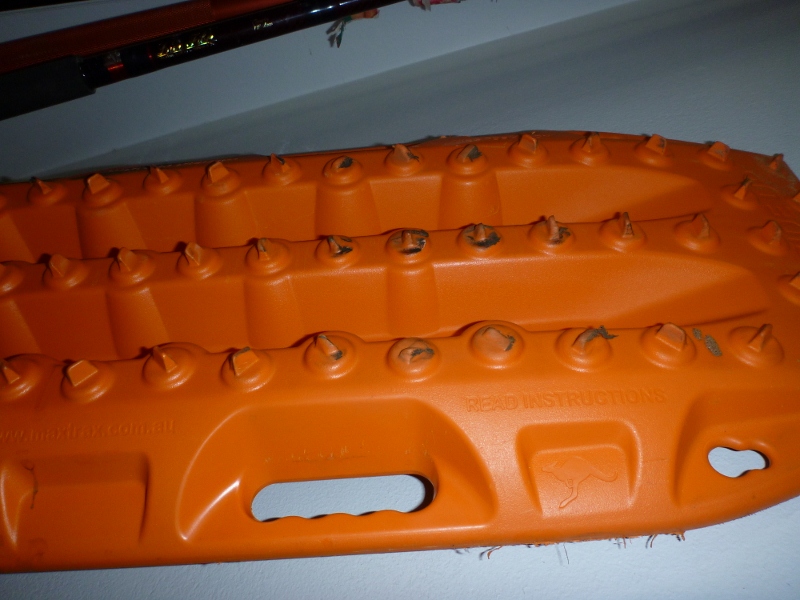 Review: Work well, I’ve only used the Maxtrax in sand. Has been used to recover my vehicle twice and a bogged stranger once. They wear out quickly from a spinning wheel. Avoid spinning your wheels – the studs will be gone before you know it. If you’re bogged to the chassis with the wheels spinning freely, don’t shove them in and hope for the best. The wheels will just spin and wear out the studs. Get the shovel out first, get some weight back on the wheels.