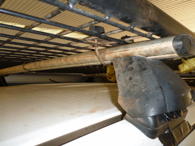 Review: It’s only a couple of kilos heavier than the aluminium version and is much lighter then some of the big heavy duty steel roof racks / platforms that you see. The grid mesh arrangement is quite practical in terms of strapping stuff in any orientation. I like that it has no sides so it’s easy to get stuff on and off. It has developed a couple of spots of surface rust so maybe its life is not as good as aluminium. I have sprayed with lanolin so hopefully the rust does not spread.